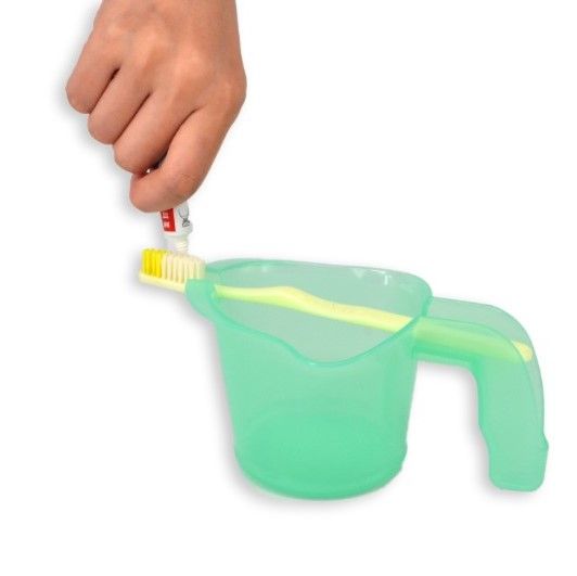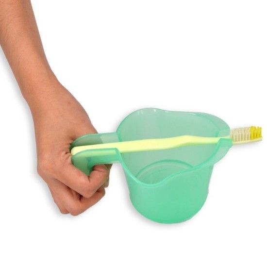 可收納牙刷的漱口杯,讓你放置刷牙時放牙刷於杯上,嗽口或塗抹牙膏再沒難度