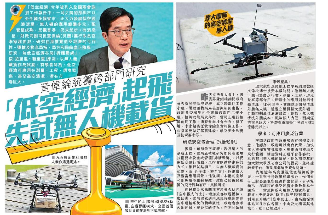 黃偉綸:截至上月底有17個低空經濟監管沙盒試點項目落地