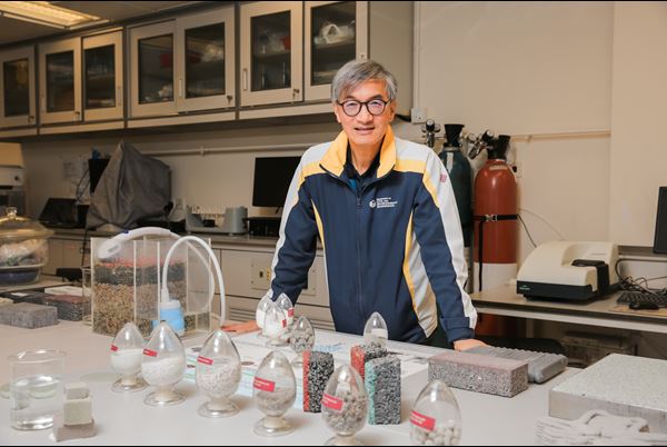 Ir Professor Poon Chi-sun, Director of The Research Centre for Resources Engineering towards Carbon Neutrality (RCRE), Chair Professor of Sustainable Construction Materials and Head of Department of Civil and Environmental Engineering of PolyU, has spared no effort in researching eco-friendly construction materials for more than 20 years. The eco-block invented by him has already undergone five generations of development. Meanwhile, Professor Poon is still actively conducting onsite testing and verification procedures to replace concrete aggregates with crushed glass transformed from recycled waste glass. PolyU has become an ideal venue for the verification process.