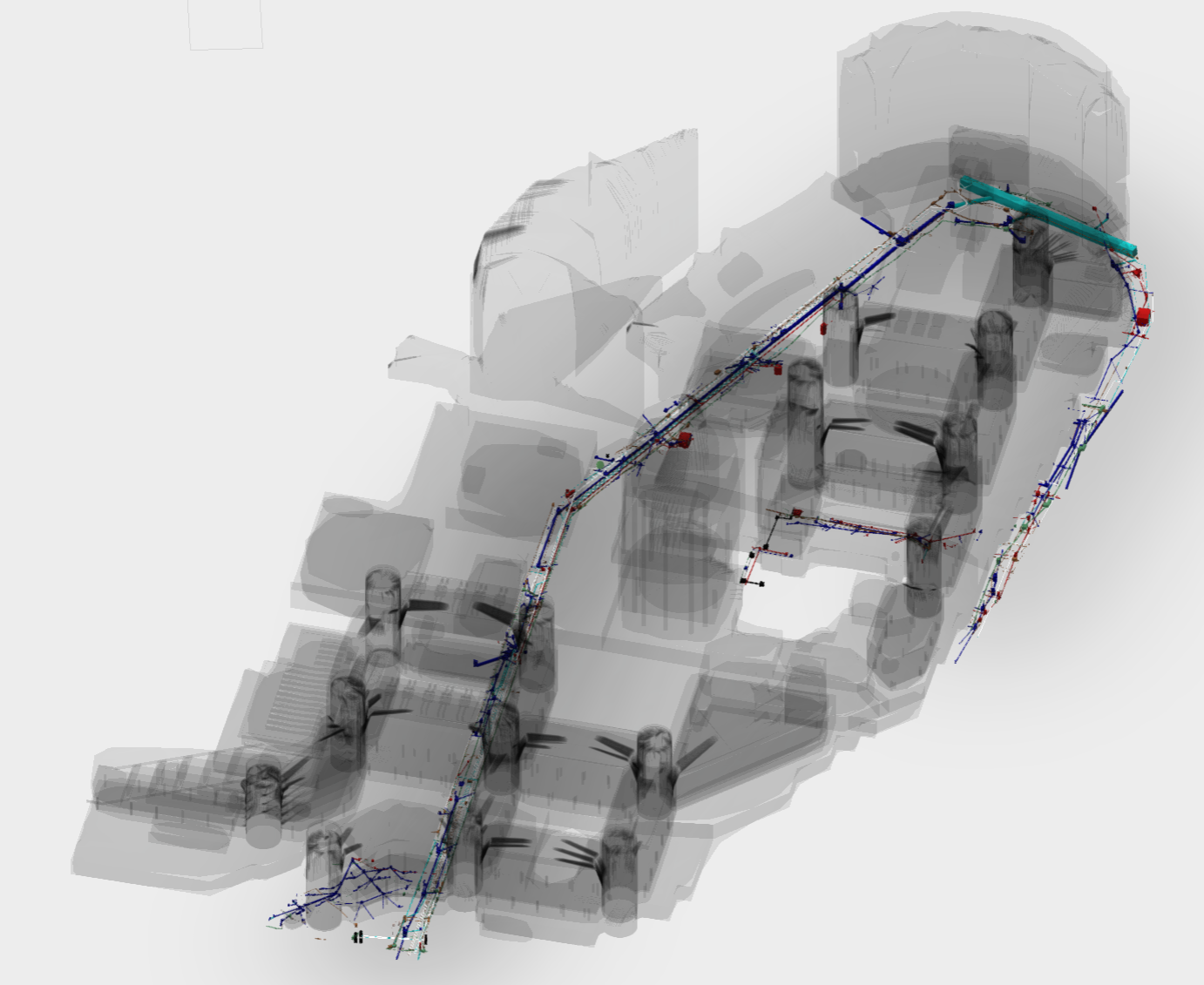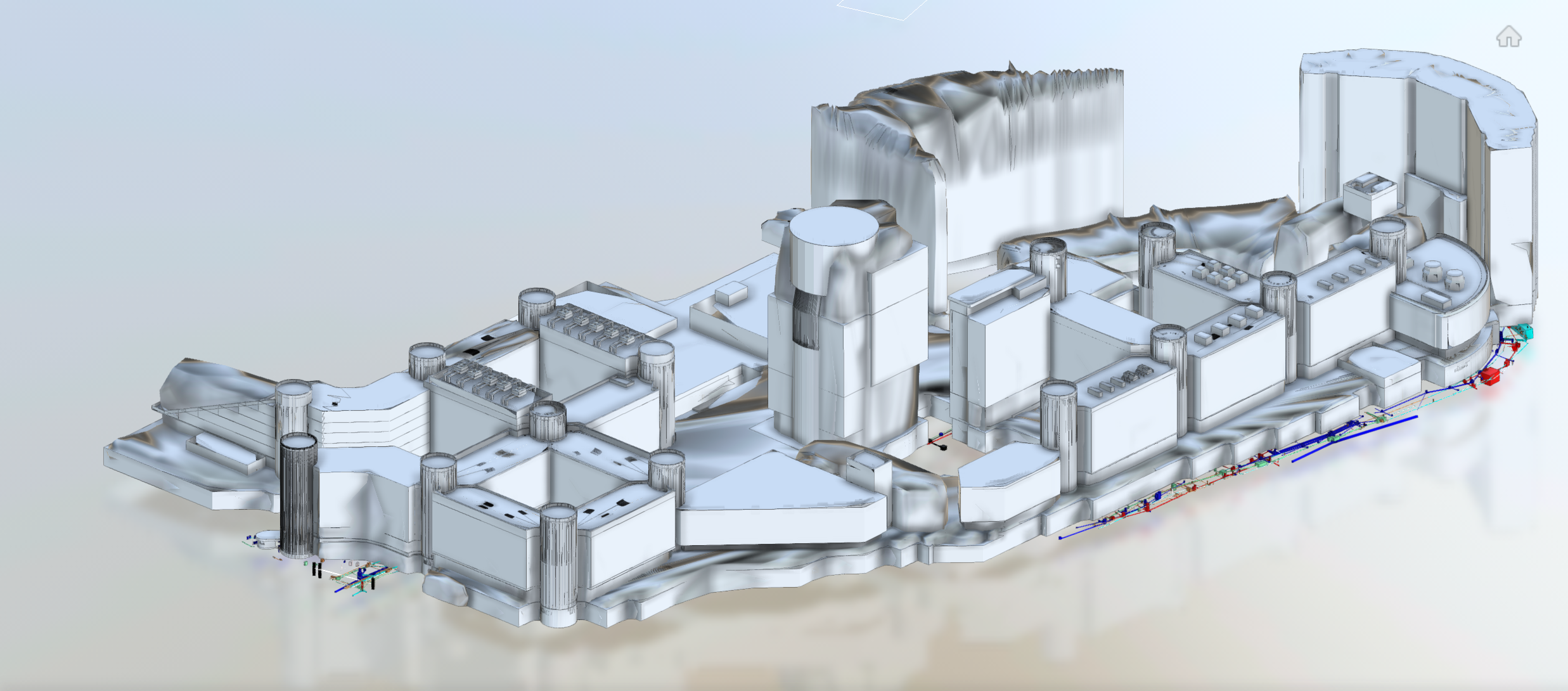 從圖片可見,數碼化3D圖像能清楚顯示橫跨整個校園、錯綜複雜的地下管線網絡,有助提升規劃和施工效率,降低工程出錯機會,讓理大得以將海水引導至校園內的沖廁系統。
