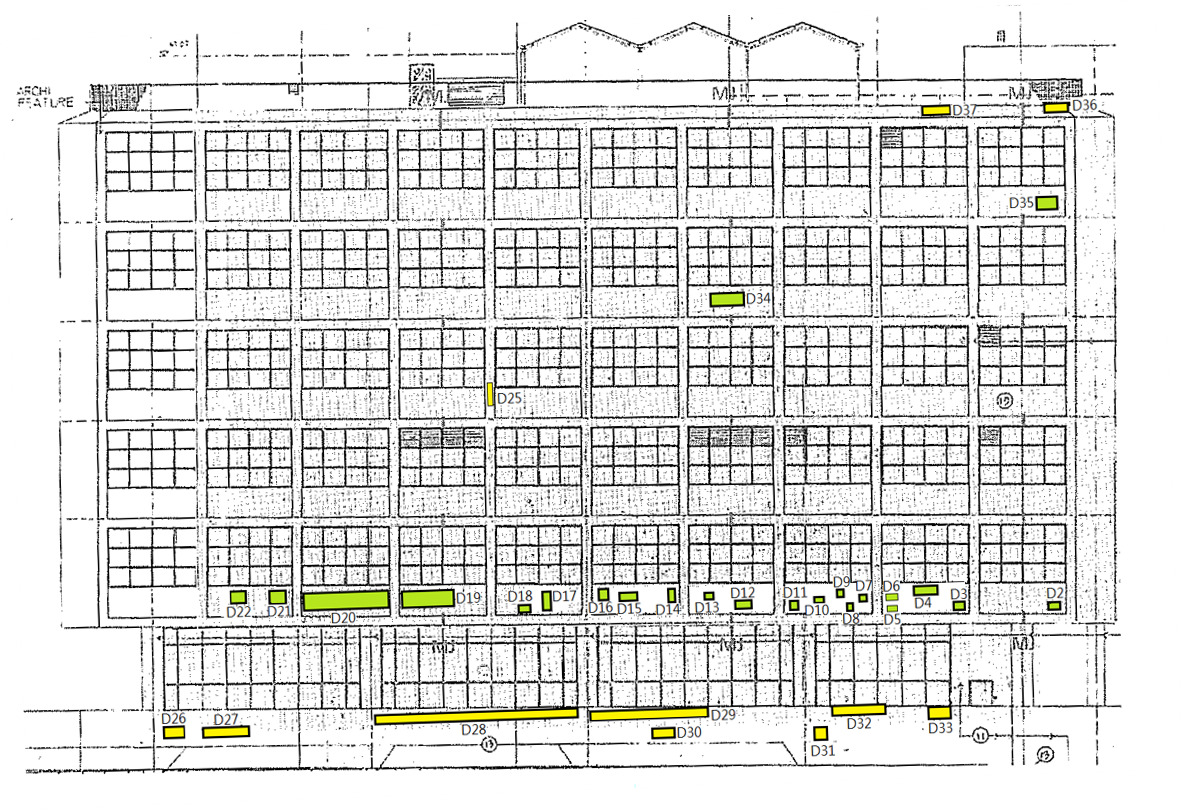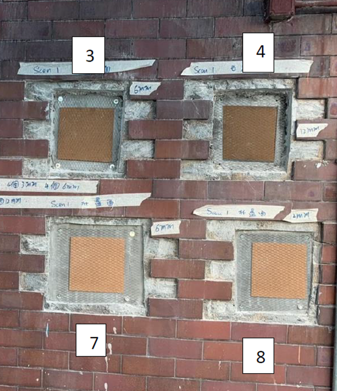 採用了方法4 — 利用傳統紅外線先探測外牆,配以熱成像影像處理技術來修正效果,再用傳統人手敲鎚配合電子敲鎚加以勘察,最終準確地找出所有空鼓的位置。