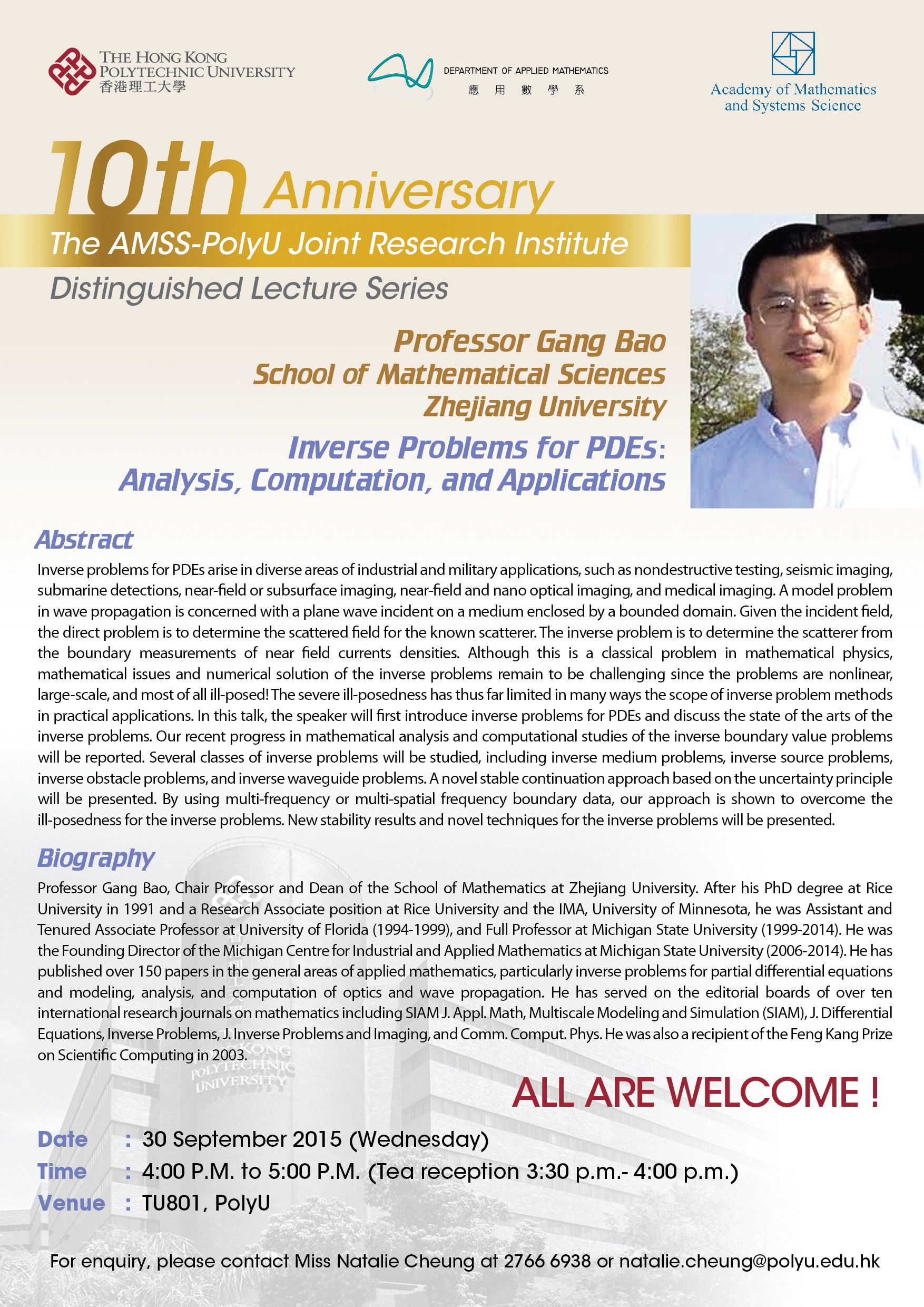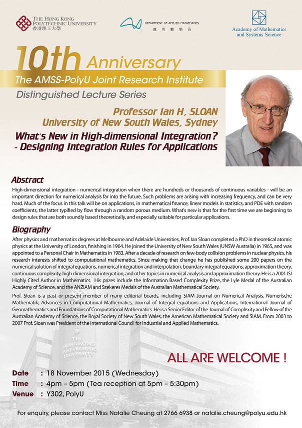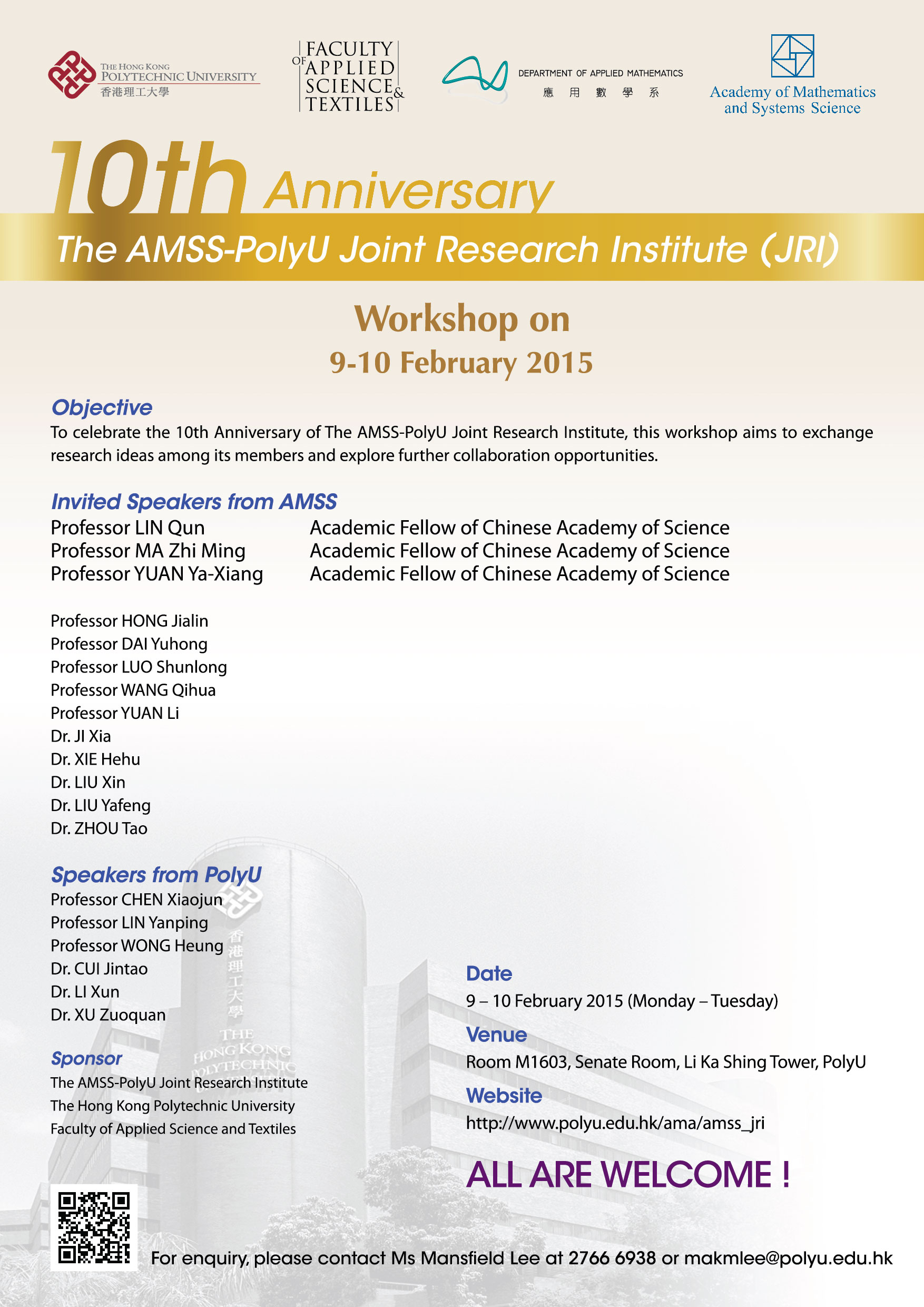 The AMSS-PolyU Joint Research Institute Workshop on Computational Mathematics
