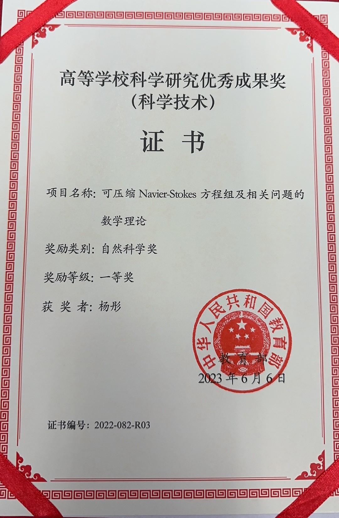 - Ministry of Education Higher Education Outstanding Scientific Research Output Award (Science and Technology), China (First Prize), 2019 and 2022.