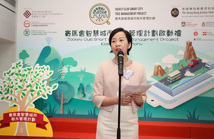 Officiating at the kick-off ceremony of the Project, PolyU’s Executive Vice President, Dr Miranda Lou, said PolyU has been striving to promote the sustainable development of our city and the Project is a typical example of this mission. “Committed to the pursuit for application-oriented research, PolyU researchers will apply smart sensing technology and Geographic Information Systems for monitoring tree stability. Our vision of establishing this system is to facilitate green management in the city for longer tree lives, so as to further improve our air quality for enhancing the living environment for the local community,” she said.