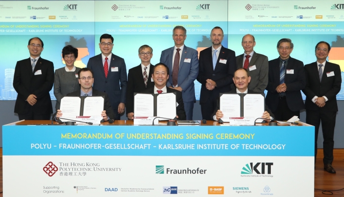 香港理工大学(理大)与两所德国顶尖研究机构 ─ 弗劳恩霍夫应用研究促进协会(Fraunhofer-Gesellschaft) 及卡尔斯鲁厄理工学院 (Karlsruhe Institute of Technology) ─ 携手推进以应用为本的科研发展,致力开拓更多生命科学及工程领域上的合作研究和转化应用,造福全球。