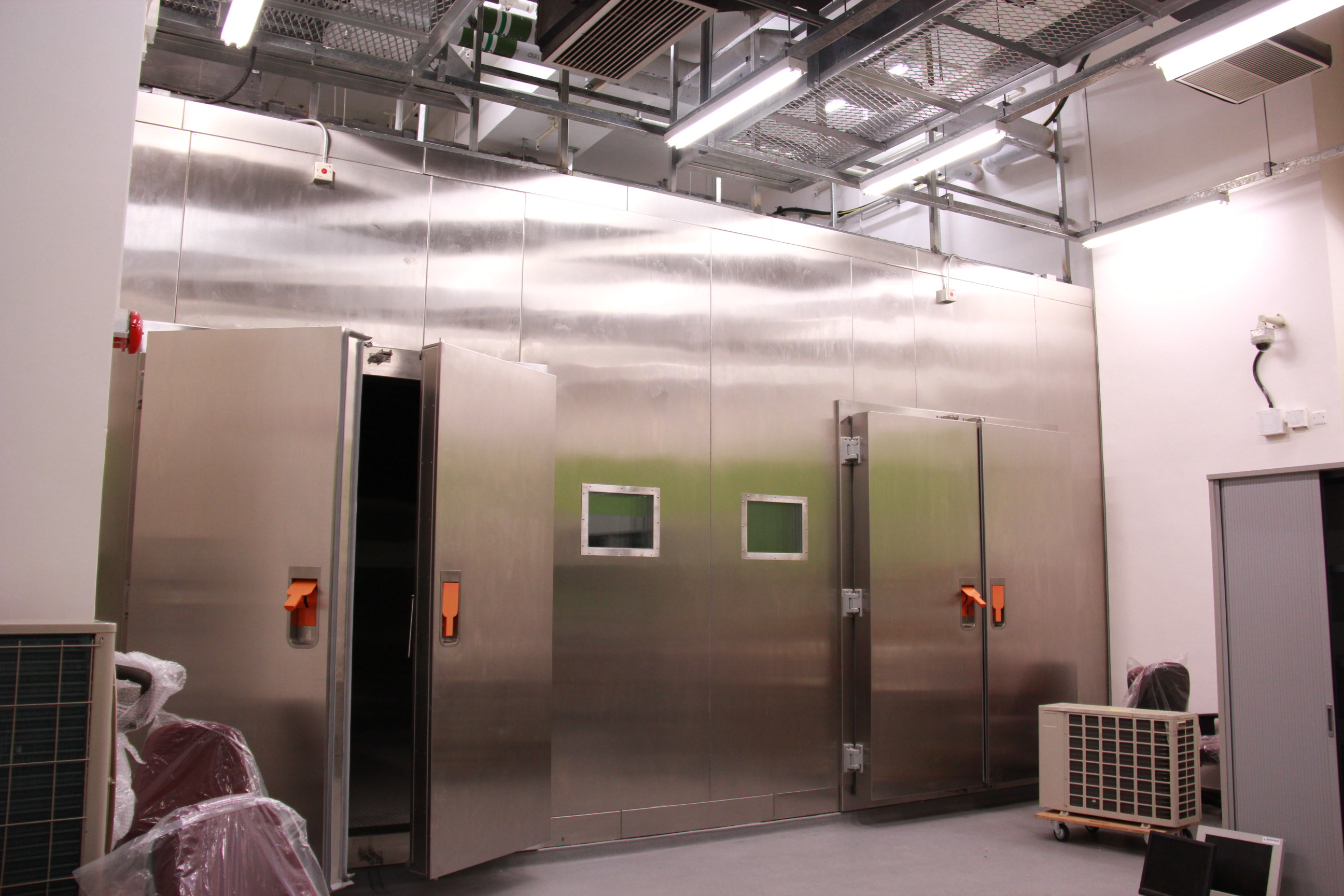The Multi-Function Chamber Laboratory is equipped with a main heating and cooling plant comprising a chiller, a boiler, hot and chilled water pumps, an air handling plant and a main supervisory control and data acquisition centre. The temperature, relative humidity and airflow within the chamber can be precisely controlled over a wide range of set-point conditions for various precision measurements.