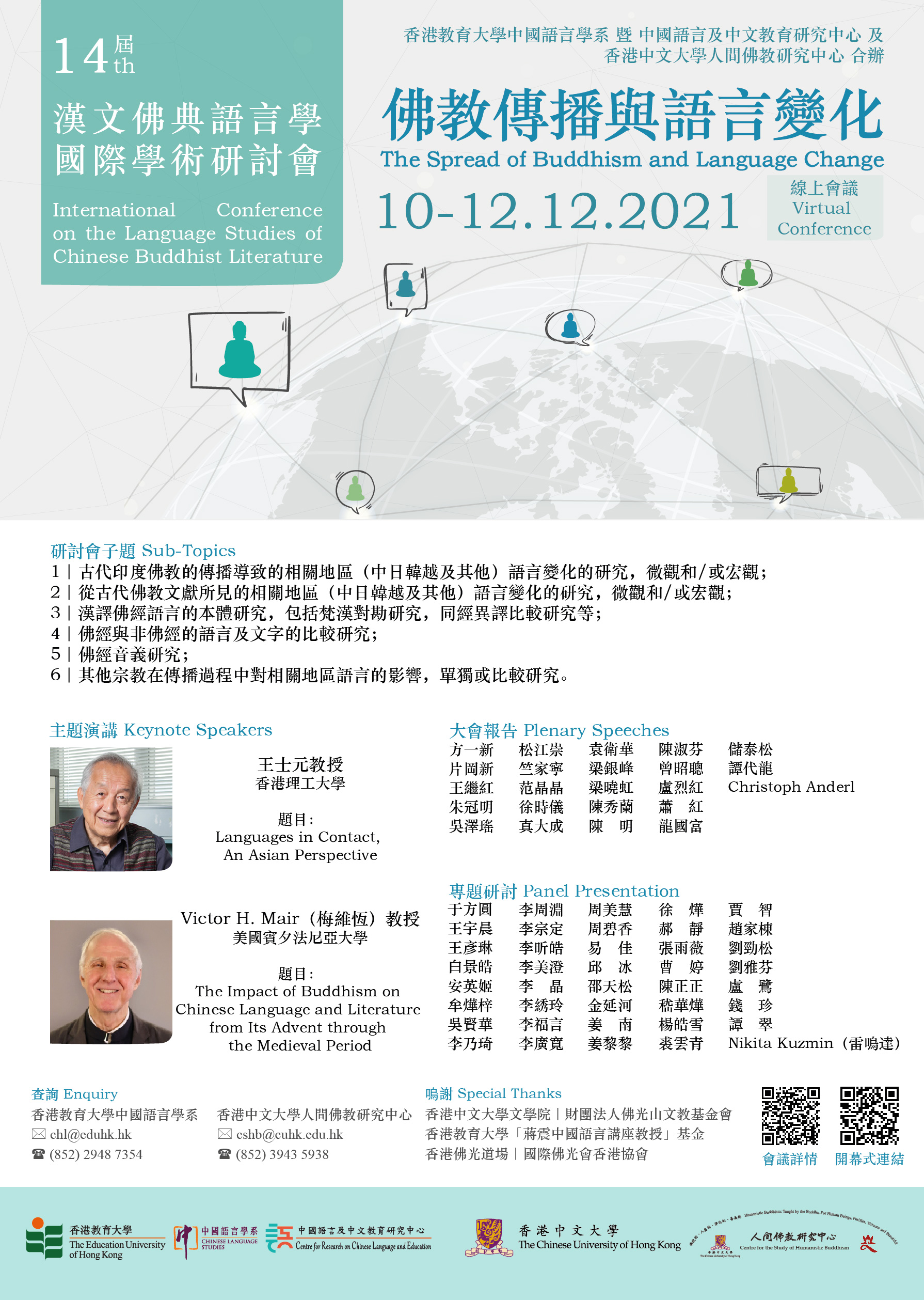 - Event: 佛教傳播與語言變化 — 第十四屆漢文佛典語言學國際學術研討會 (The Spread of Buddhism and Language Change: 14th International Conference on the Language Studies of Chinese Buddhist Literature)