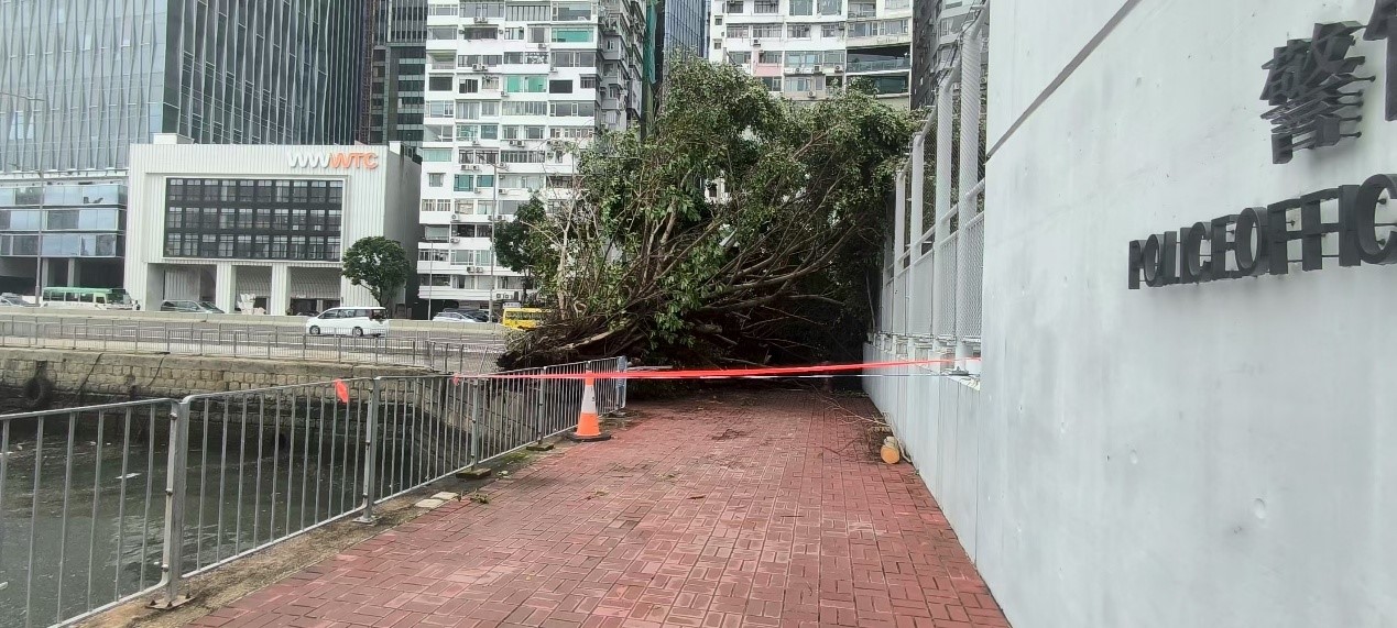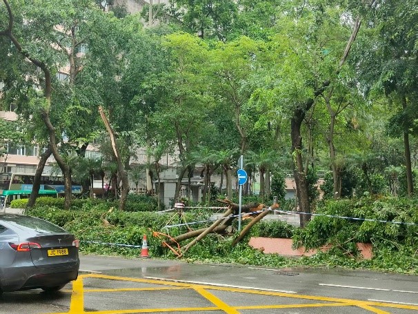 Fig. 17 Traffic obstruction from fallen trees near Police Officers' Club