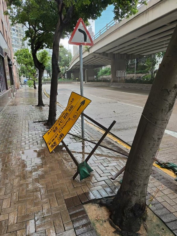 Fig. 21 Downed road sign near Chi Wo Commercial Building