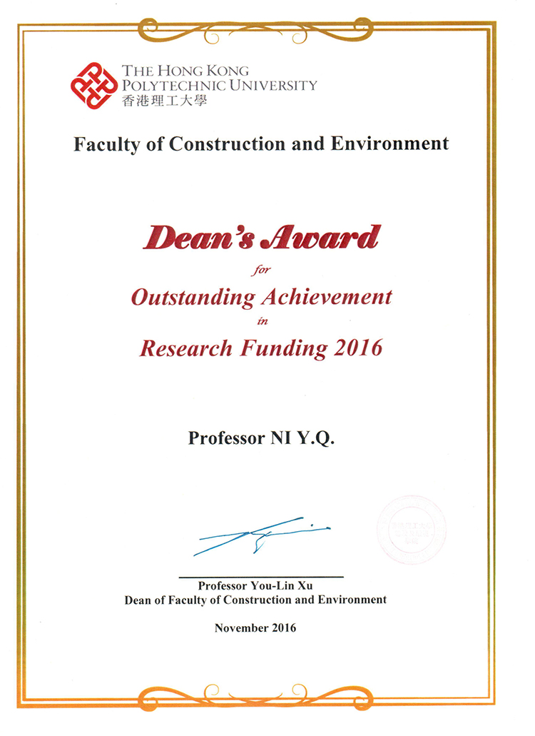 Dean's Award for Outstanding Achievement in Research Funding 2016 — Prof. Y.Q. Ni