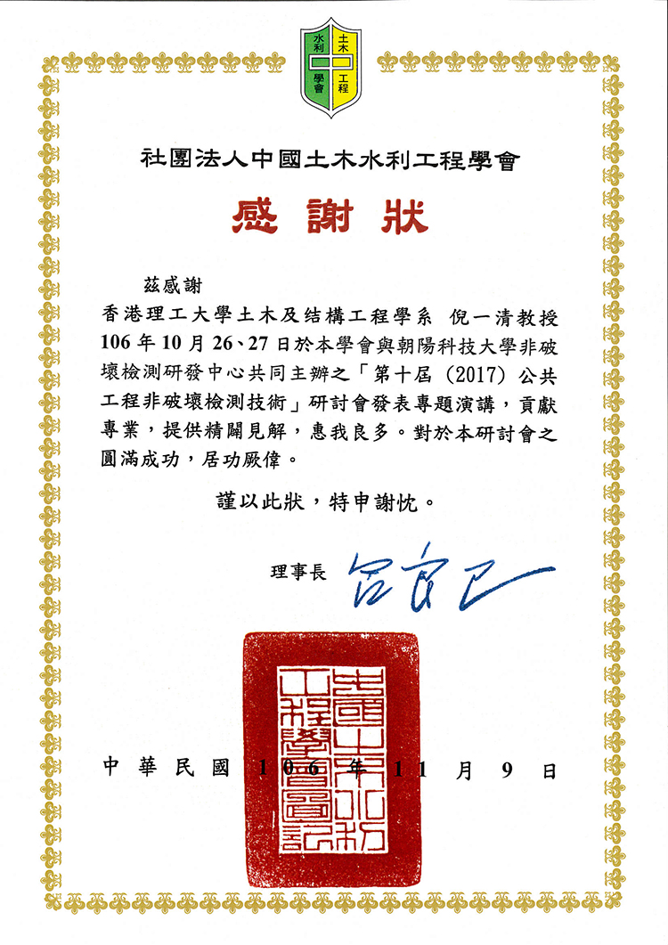 第十屆(2017)公共工程非破壞檢測技術研討會 — 倪一清教授