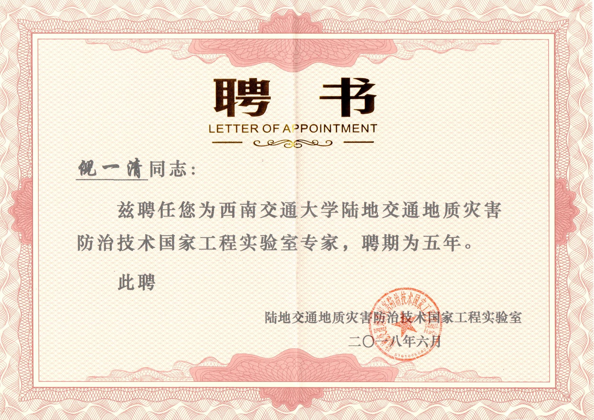 西南交通大學陸地交通地質災害防治技術國家工程實驗室 — 倪一清教授