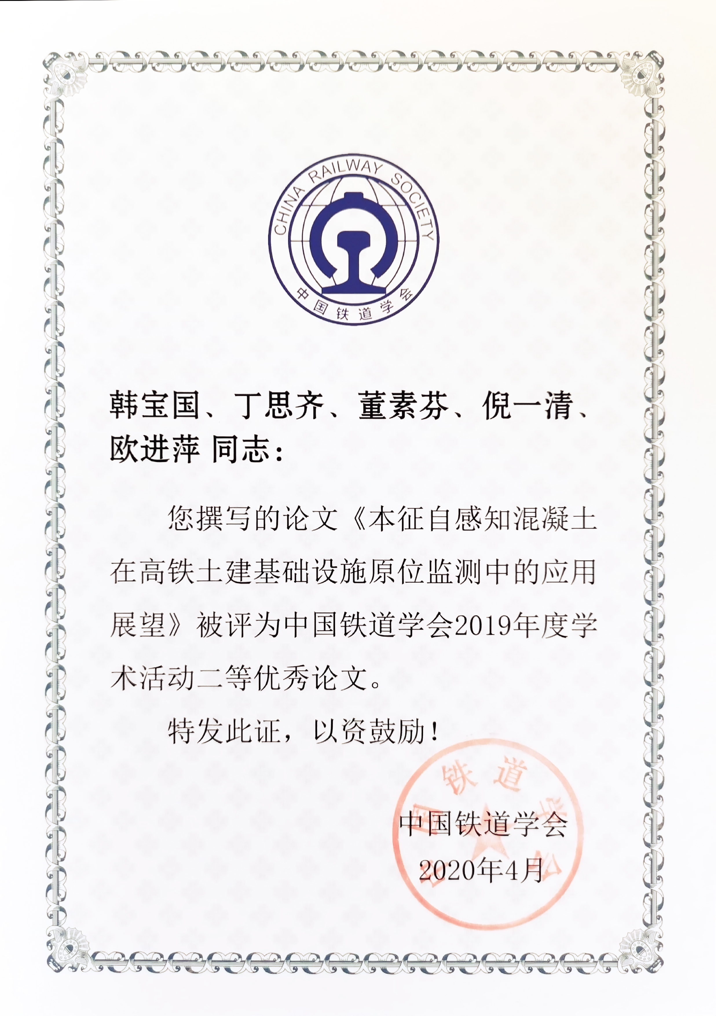 中國鐵道學會2019年度學術活動二等優秀論文 — 倪一清教授