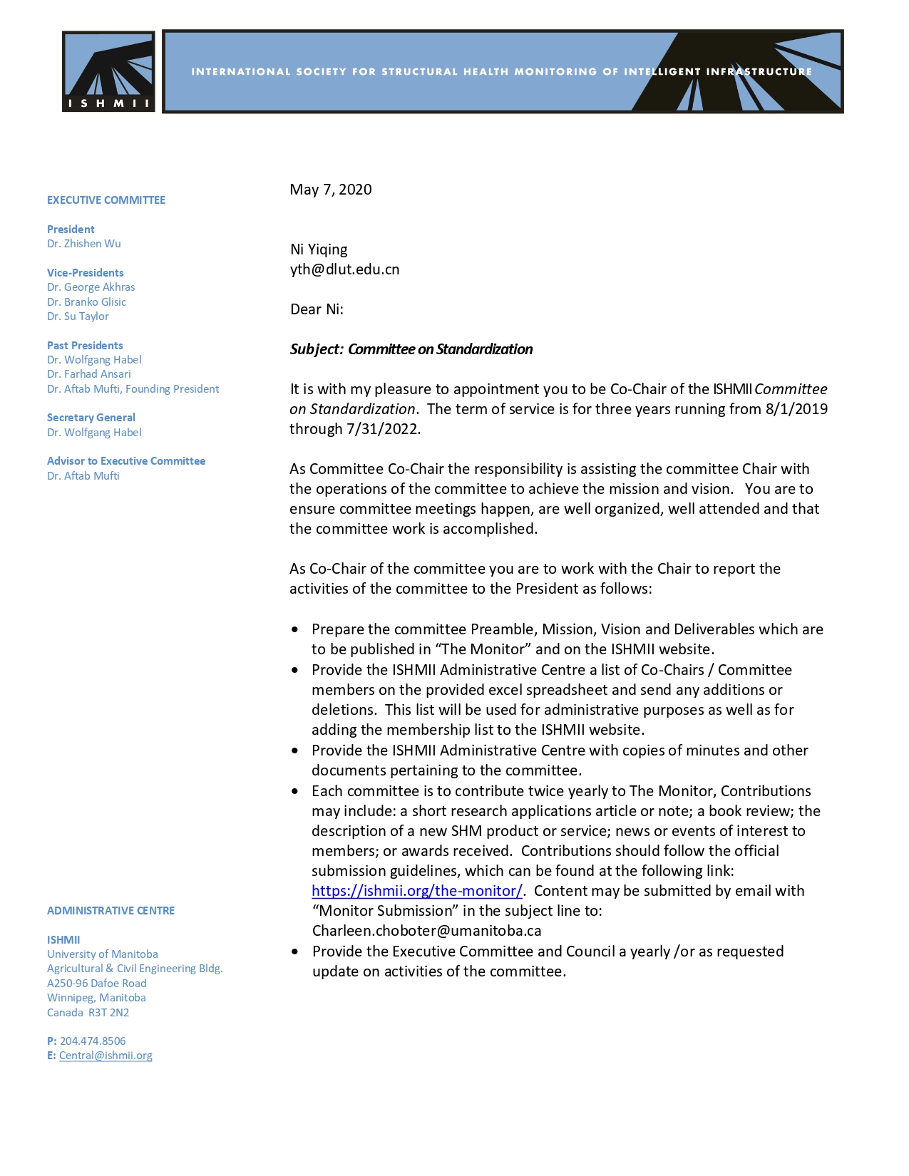 Co-Chair of ISHMII Committee on Standardization — Prof. Y.Q. Ni