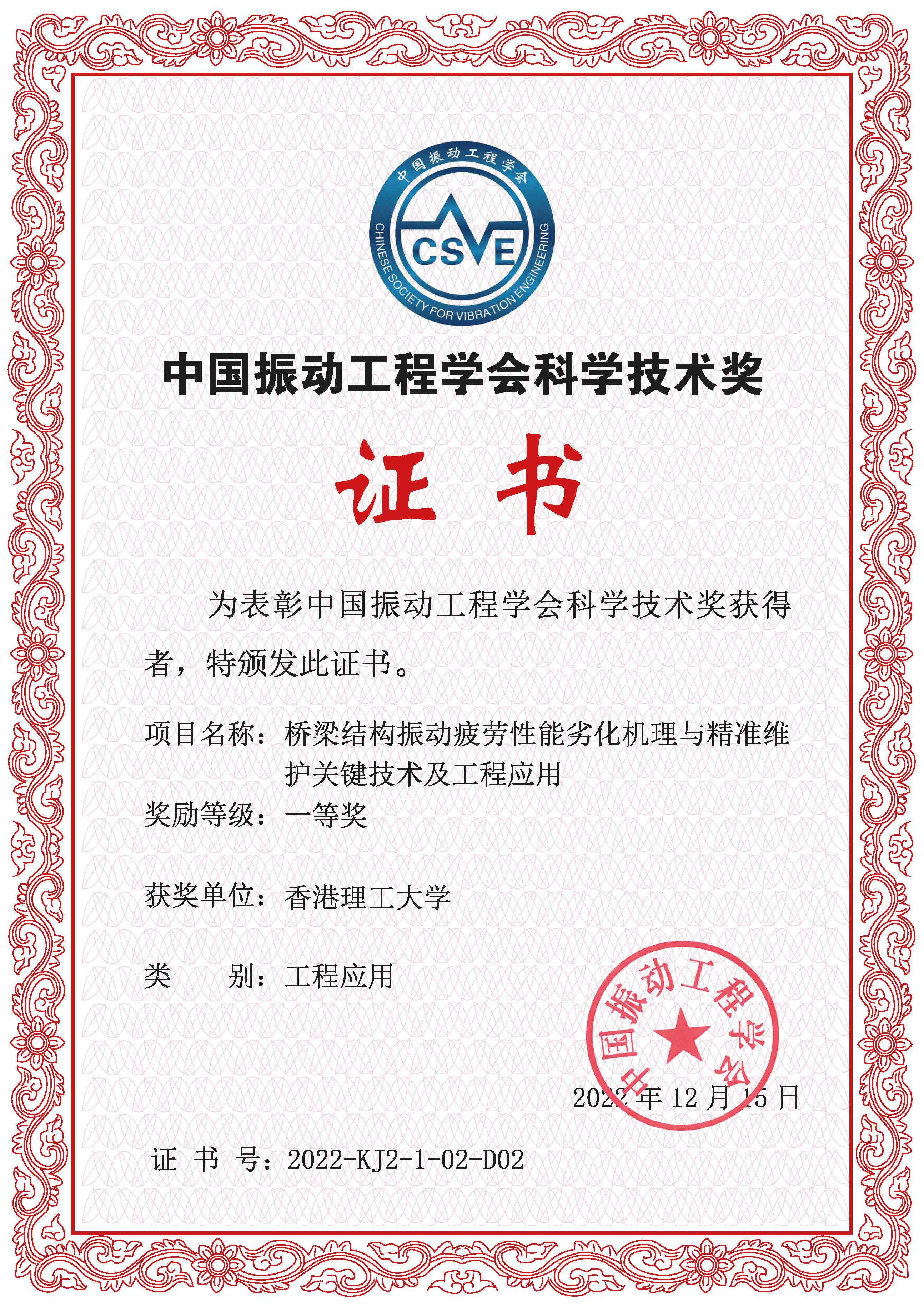 2022年度中國振動工程學會科學技術獎一等獎 — 香港理工大學