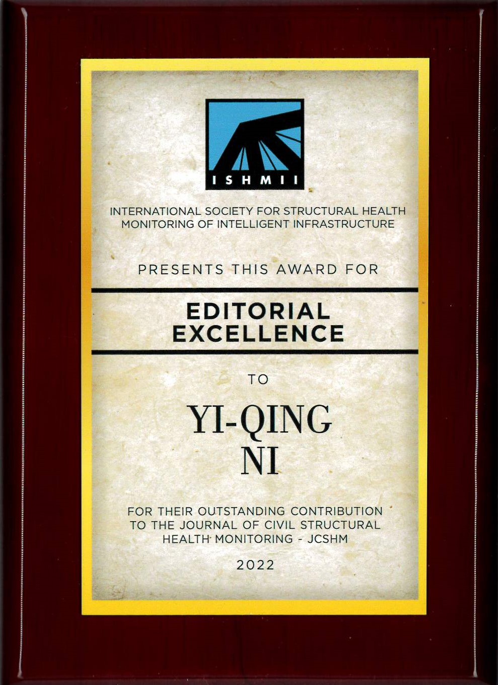 Editorial Excellence Award to Prof. Yi-Qing Ni: For his outstanding contribution to the Journal of Civil Structural Health Monitoring (JCSHM)