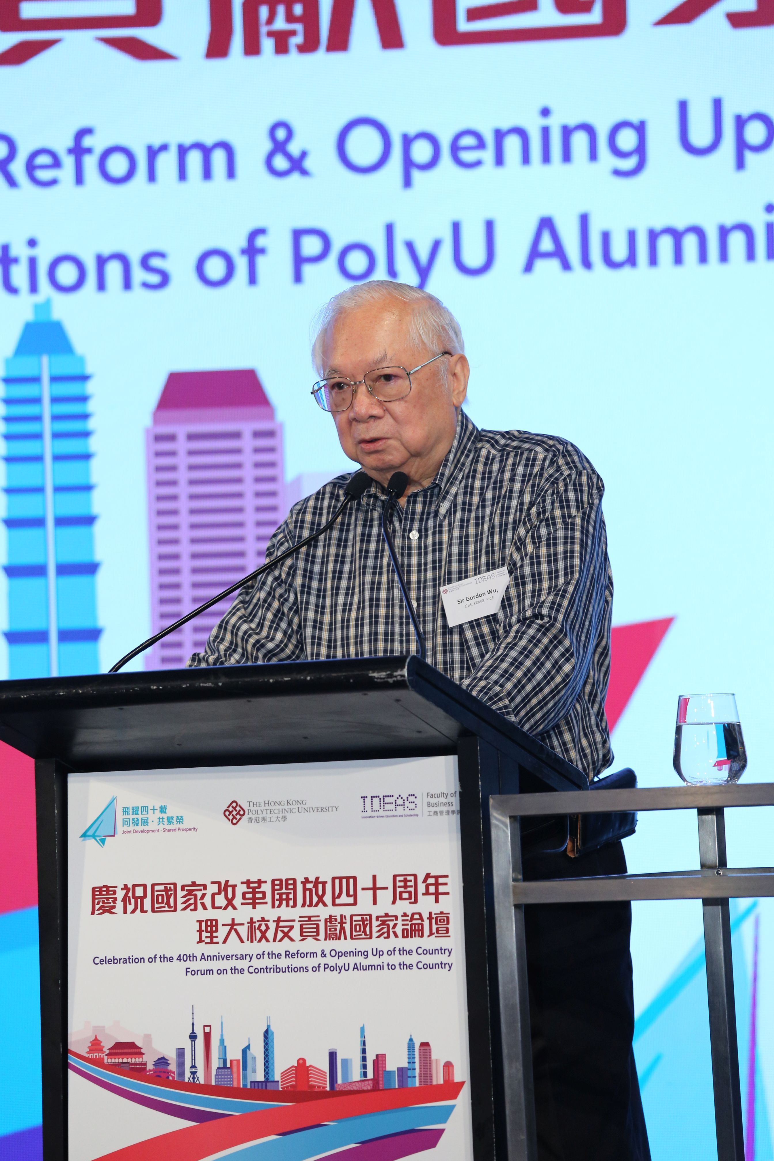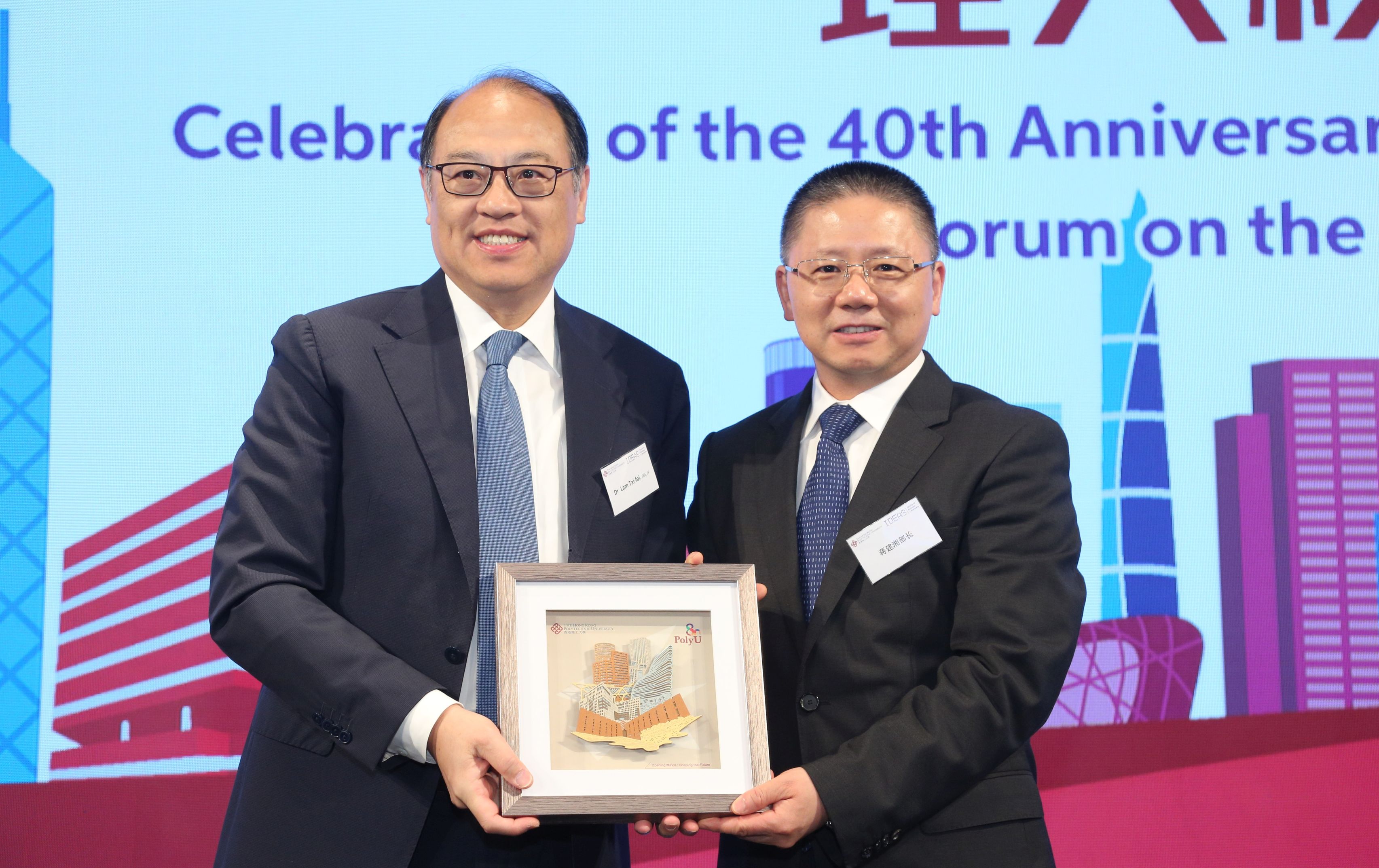 中央人民政府驻香港特别行政区联络办公室教育科技部副部长蒋建湘先生、理大校董会主席林大辉博士,以及理大暂任校长陈正豪教授担任主礼嘉宾。论坛邀得理大前校董会主席兼合和实业有限公司主席胡应湘爵士作主题演讲,分享对「国家改革开放四十年经济发展奇迹」的真知灼见。
