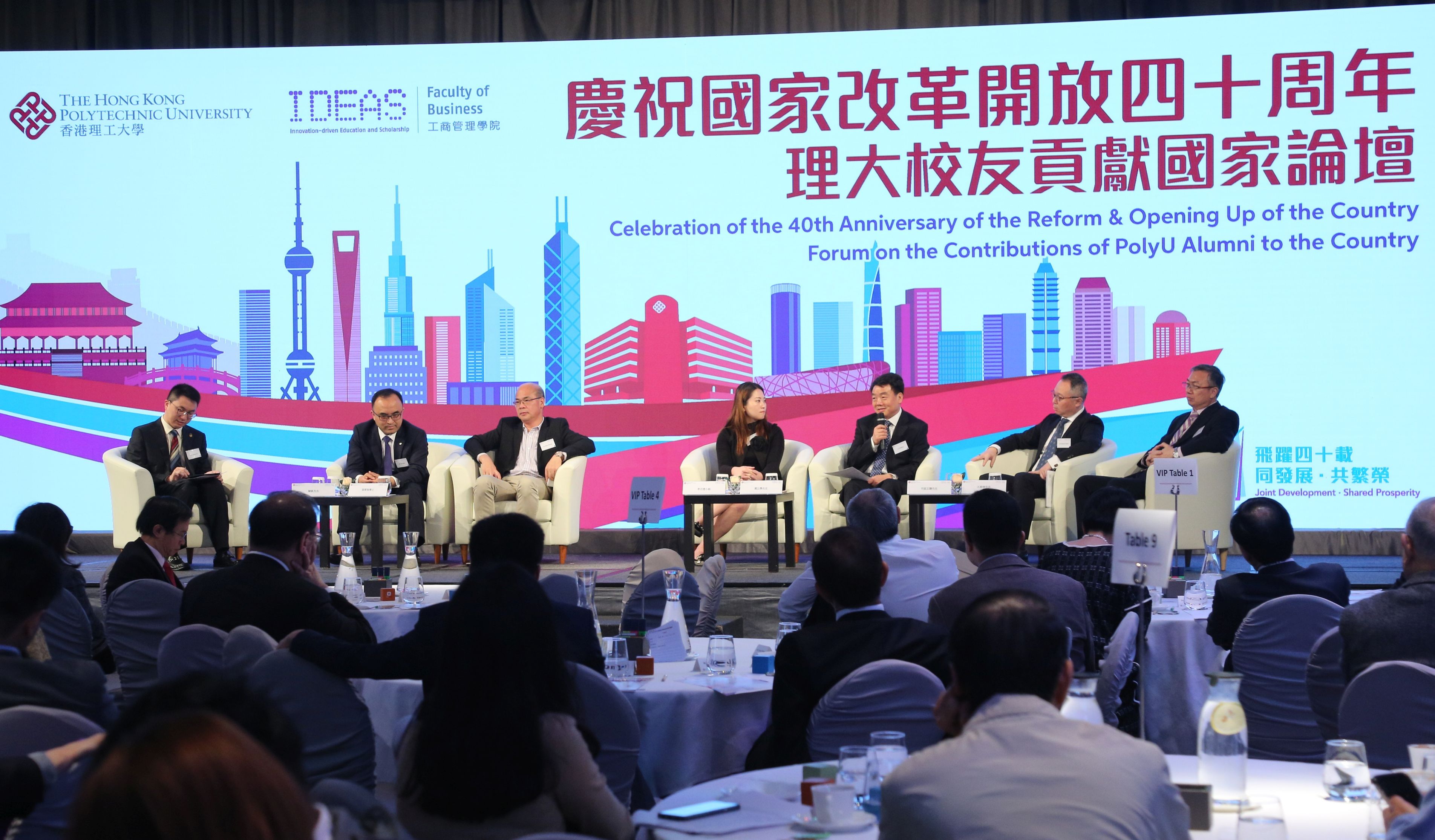 香港理工大学 (理大) 工商管理学院今天举办「理大校友贡献国家论坛」,庆祝国家改革开放四十周年,约250名社会政商及专业界别领袖,以及理大校友师生出席。
