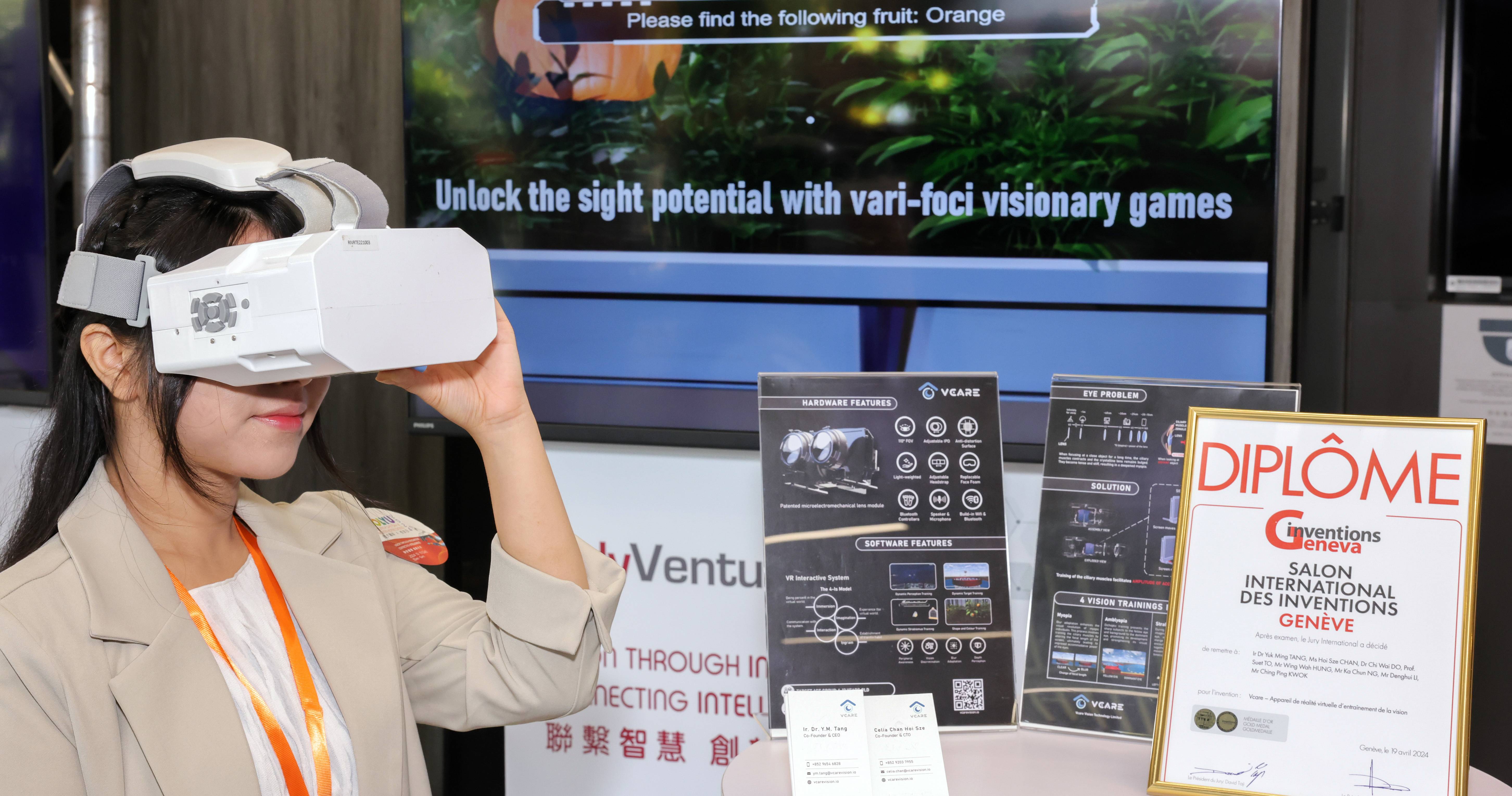 理大培育初創展示針對近視、弱視和斜視問題,提供視力矯正訓練的設備「Vcare」。 |