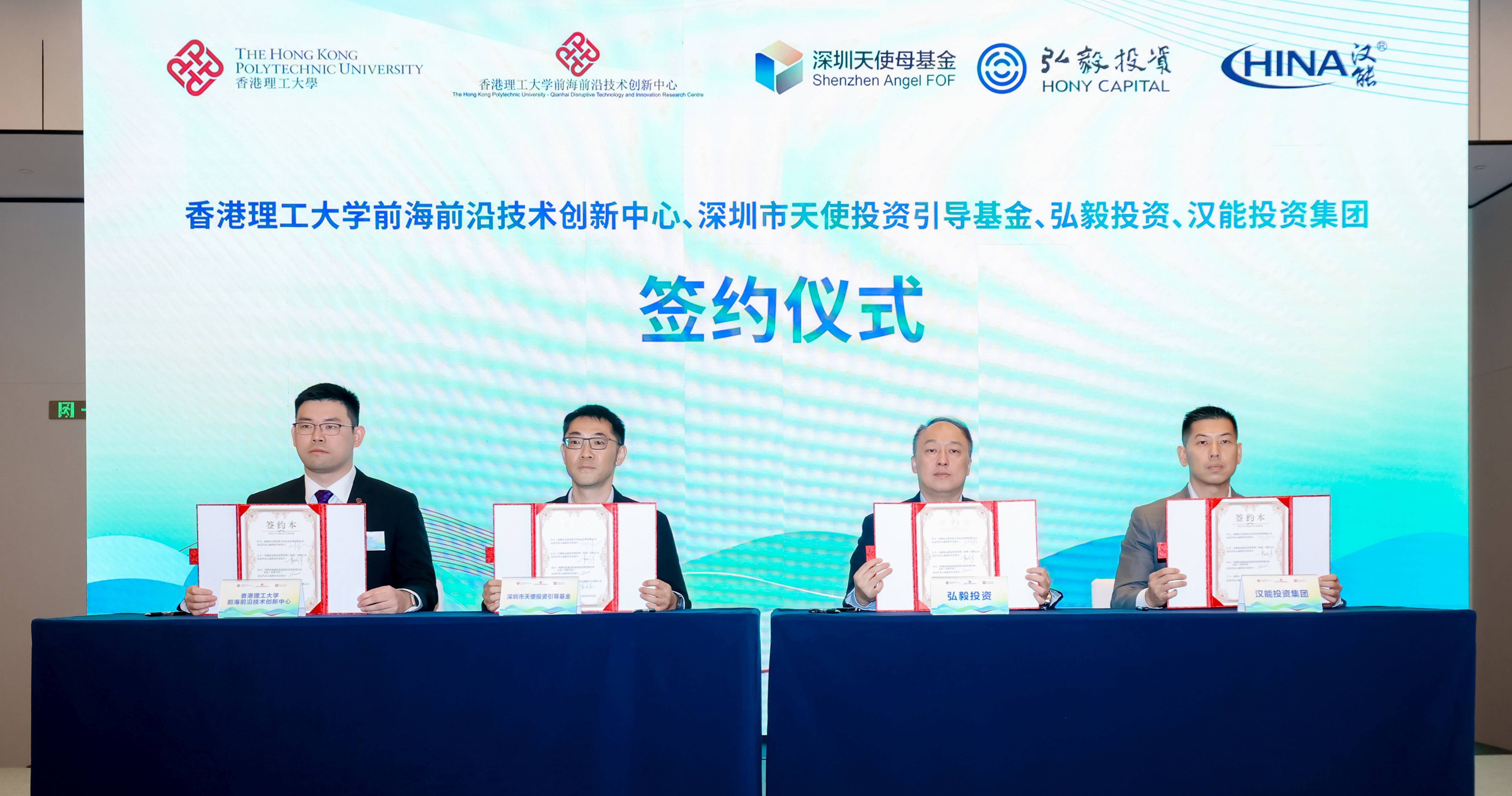 To foster a dynamic innovation ecosystem in Qianhai, QHRC entered into MoUs with the China Construction Science and Industry Corporation Limited (CSCEC) and three venture capital firms, including Shenzhen Angel Capital Guiding Fund, Hony Capital and Hina Investment. Separately, PolyU signed MoUs with Shenzhen Reform and Opening Up Executive Leadership Academy, and HKCPPCC (Provincial) Members Association.