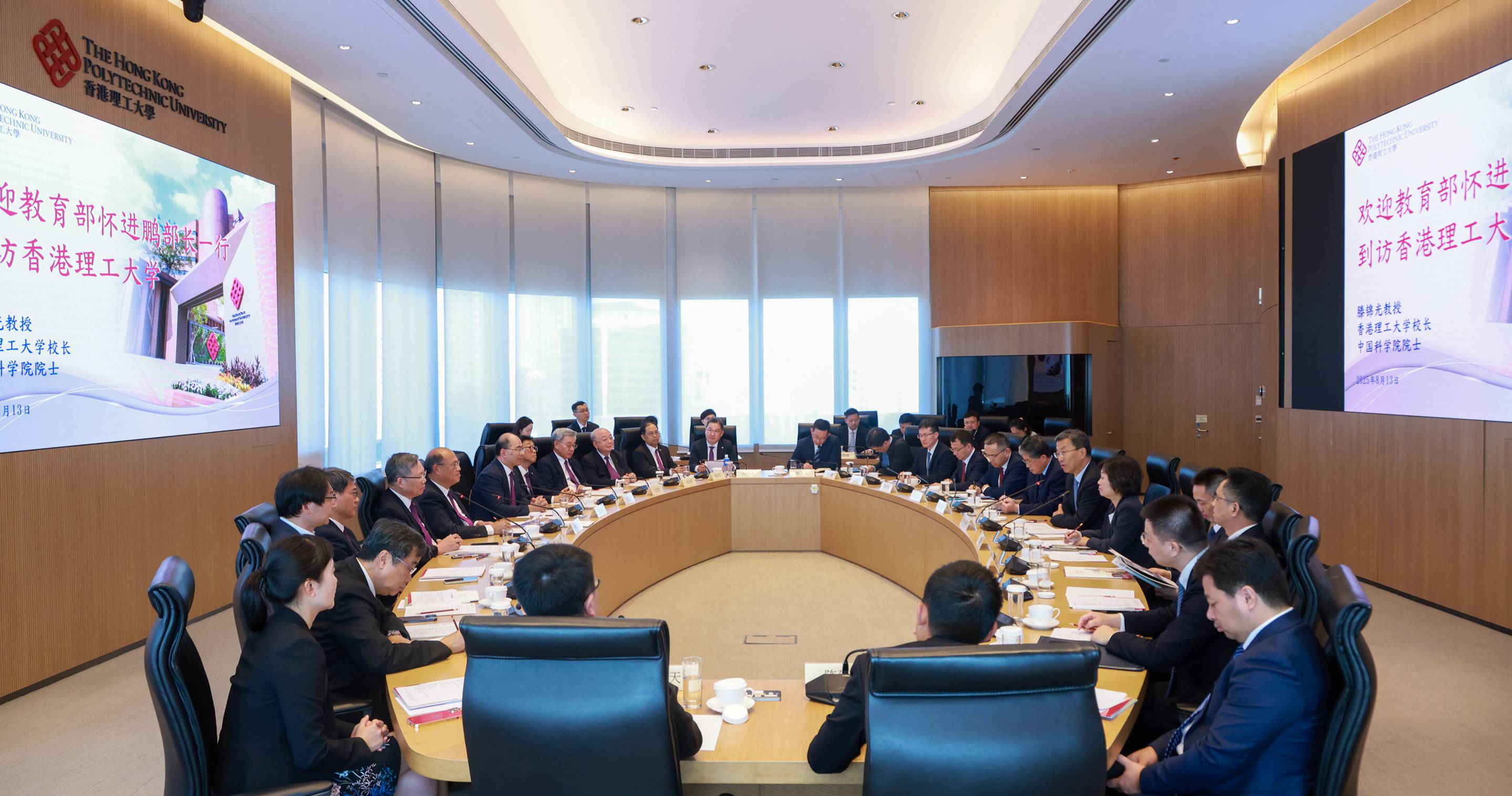 國家教育部部長懷進鵬先生今天率團到訪香港理工大學(理大),與理大領導層及科研人員深入交流,了解大學最新的創新科研工作及成果,尤其在醫學、健康及人工智能賦能醫療技術創新等前沿領域的突破性成果。