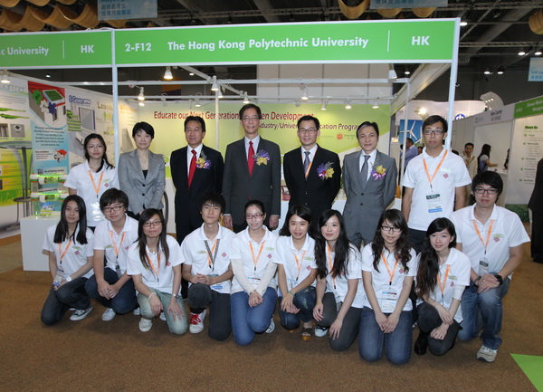 With support from the industry, a collection of green plastic products designed by PolyU’s mechanical engineering students was presented at the Eco Expo Asia 2011 from 26 to 29 October. Mr Edward Yau, Secretary for the Environment of the HKSAR Government, visited PolyU’s booth and expressed interest in the products designed and produced by the students. The booth was opened by Dr Steve Wong, Managing Director, Fukutomi Company Limited; Dr Royce Yuen, Deputy CEO & Head of Artist Business and Events, Pacific Global Management Asia Limited; Prof. Timothy W. Tong, PolyU President; and Project Coordinator Prof. Alan Lau Kin-tak of the Department of Mechanical Engineering. Details>>