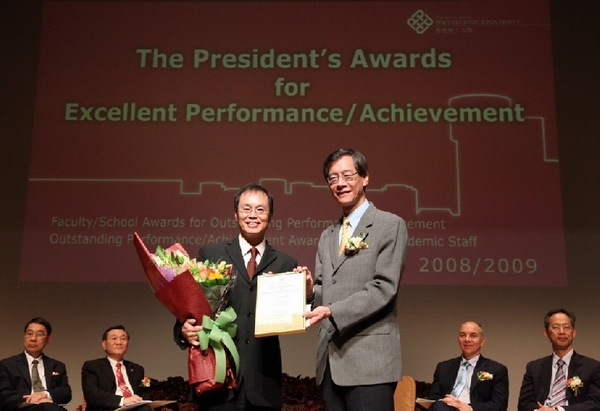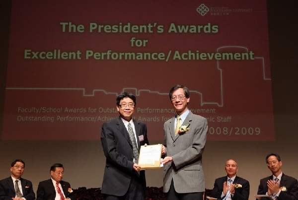 PolyU paid tribute to some 30 dedicated staff members for their outstanding achievements in teaching, research and scholarly activities, services and overall contribution, at a special ceremony held on 27 November. The Awards are grouped in the categories of “President’s Awards for Excellent Performance / Achievement”, the “Faculty / School Awards for Outstanding Performance / Achievement” and the “Outstanding Performance / Achievement Awards for Non-academic Staff”. They are presented by PolyU President Prof. Tong, the respective Faculty Deans and the School Board Chairmen. A total of five individuals and two teams have been selected for the “President’s Awards for Excellent Performance/Achievement”. They are: