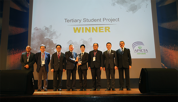 Ho Man-fai, graduate of the Department of Computing, was named the winner of Asia Pacific ICT Alliance Awards 2016 (Tertiary Student Project category), with his interactive e-learning application “KinectGarten” designed for young children.