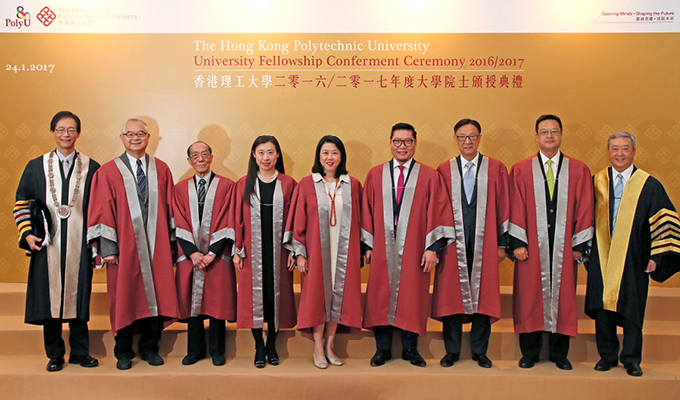 On 24 January, PolyU conferred University Fellowships upon seven outstanding individuals to pay tribute to their significant contributions to the University and the community. The recipients were: