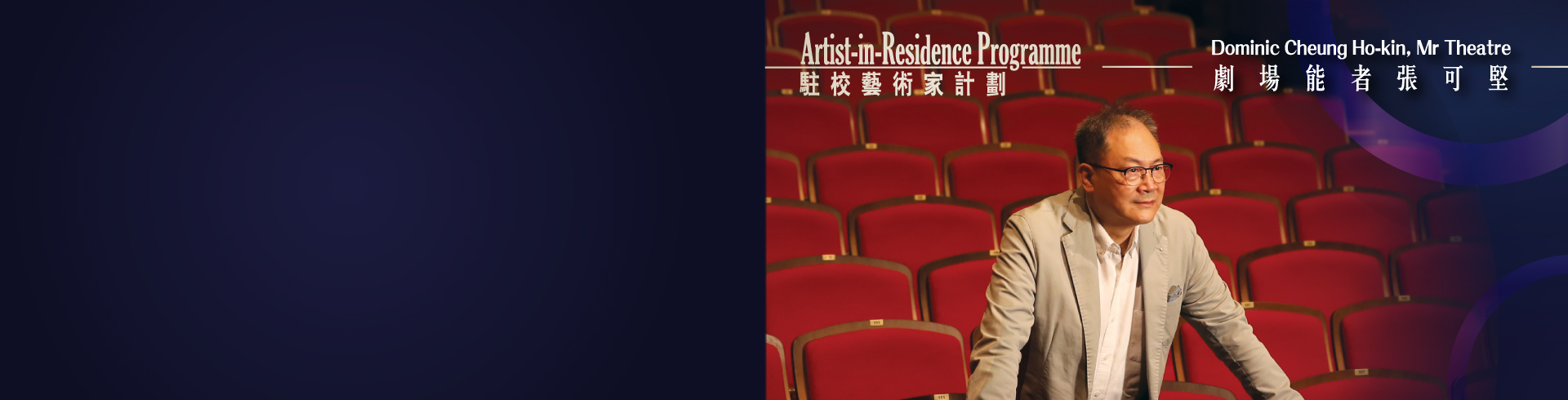 Mr Dominic Cheung Ho-kin is a veteran theatre practitioner. His experience in theatre work includes the roles of producer, director, actor, translator, and even theatre critic. Cheung started his career in drama by playing Henry in the first production of the Hong Kong Repertory Theatre Company, Skin of Our Teeth, in 1977. He was a founding member of Seals Theatre Company, and in 1982 became a professional actor with Chung Ying Theatre Company after graduation from Hong Kong Baptist University. In 1987 Cheung left Chung Ying to further his studies at the University of Hong Kong, while working as the General Manager of High Noon Production Company Limited at the same time. He graduated from the University of Hong Kong with a Bachelor of Arts (Hons) in Translation in 1989 and in 2011 he attained a Master of Fine Arts in Directing from the Hong Kong Academy for Performing Arts. In recognition of his contribution to the development of art and culture in Hong Kong, he was awarded the Certificate of Commendation by the Home Affairs Bureau in 2014.