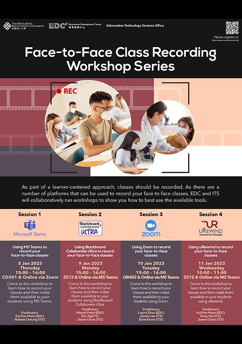 Come to this workshop to learn how to record your classes and then make them available to your students using uRewind.