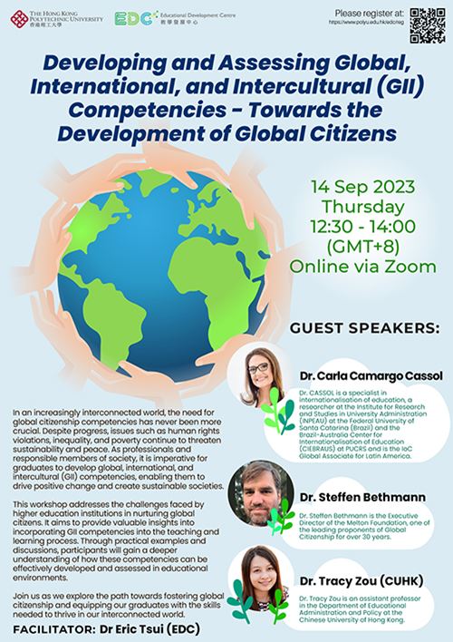 This workshop addresses the challenges faced by higher education institutions in nurturing global citizens. It aims to provide valuable insights into incorporating GII competencies into the teaching and learning process. Through practical examples and discussions, participants will gain a deeper understanding of how these competencies can be effectively developed and assessed in educational environments.