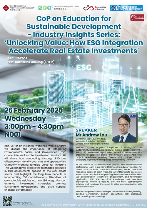 Speaker: Mr Andrew Lau, Director of ESG Advisory, Asia , Valuation & Advisory Services, Colliers International (HK) Limited