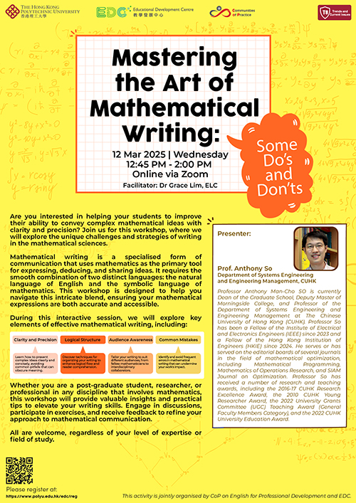 During this interactive session, we will explore key elements of effective mathematical writing, including: