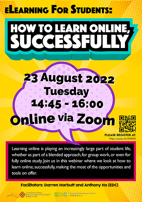 Learning online is playing an increasingly large part of student life, whether as part of a blended approach, for group work, or even for fully online study. Join us in this webinar where we look at how to learn online, successfully, making the most of the opportunities and tools on offer.