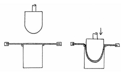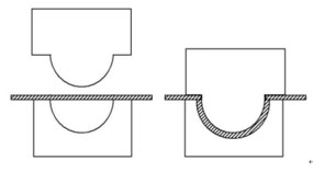 A pair of male aluminum mould in semi-oval shape, is fixed on a plate. It moves up and down by the power of pneumatic or oil compressor.