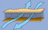 A pair of pads is drawn toward the walls of heated female moulds (cavity) by hot male moulds (press). The foam material is then softened by heat and compressed by pressure for a specified time. The thickness of material depends on the gap between the male press and female cavity.