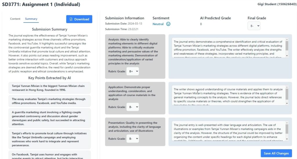 Assists teachers in the grading process with tools for summarization, key point extraction, and an AI-enhanced Q&A Chatbot.