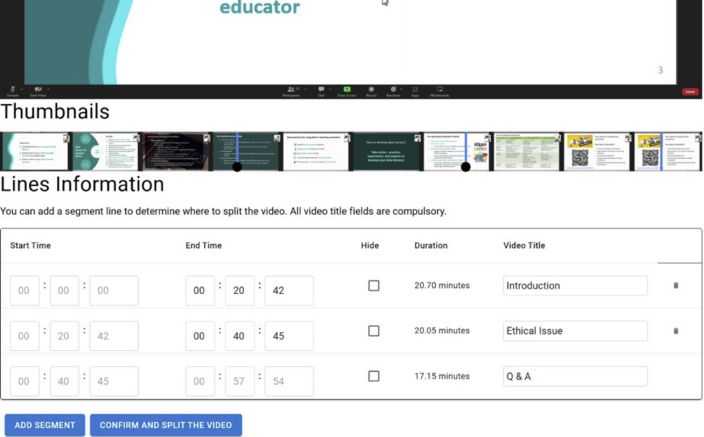 Video Segmentation: In the pre-survey, 93.9% of students agreed that splitting long lectures into shorter, topic-specific clips would facilitate easier content review.