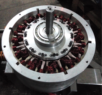 Using in-wheel motor drives is promising for EV propulsion, which can significantly improve vehicle interior space and dynamic response. In PolyU, novel ironless in-wheel motor drives are developed. Because of the ironless structure, it can reduce the motor weight and size. Meanwhile, the ironless feature can eliminate core loss, thus higher efficiency can be achieved throughout the whole speed range. Benefiting from weight reduction and efficiency improvement, the developed motor drives can greatly improve the driving comfort and mileage. - Magnetic Differentials for Electric Vehicles