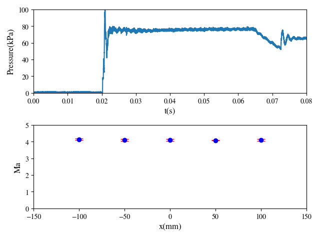 Fig.2 Ludwieg tube facility with SQRT(unit Re = 1.4~3.2 x 10^7 m^(-1)), Ma=4.0 and test time of 40 ms.