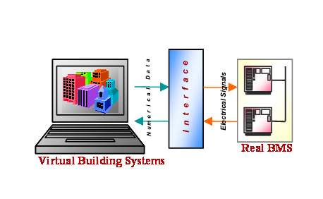 The Building Emulators, linked to the BMS, provide the simulated living VAV air-conditioning system, multiple chilling system, etc., to test the control strategies implemented in the real BMS.