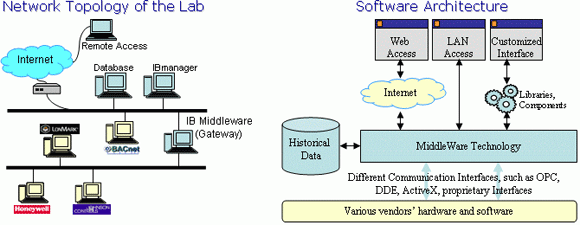 IBmanager is an open IBMS integration and management platform, a software package, developed in the PolyU/BSE based on middleware and Web services technologies. The Honeywell system, the Johnson Control system, LonWorks controllers and the BACnet controllers are integrated on a TCP/IP Ethernet network using IBmanager and locally and remotely accessible via PolyU campus network and Internet.