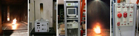 Three fire chambers with ventilation systems are provided to perform tests on force ventilation fire, sprinkler spray pattern, water discharge density, droplet size measurement, water mist fire and wind tunnels. Other experimental facilities are provided to perform tests on sprinklers, full-scale burning, smoke control and standard fire tests of building materials. A cone calorimeter is available for test of heat released rate.