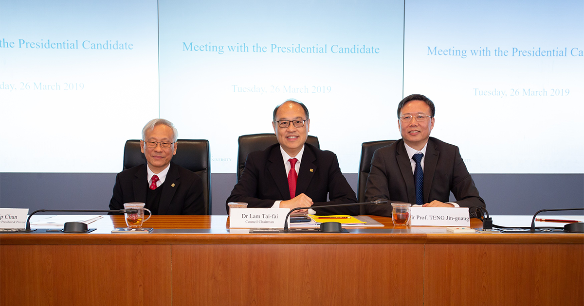 The University started the global search for a new President upon confirming that the former President Professor Timothy W. Tong would retire by the end of December 2018. A Search Committee chaired by Council Chairman was formed last February, with representatives from the Council and staff members, and a headhunter has been engaged to support the exercise. After rounds of selection and deliberations, the Search Committee resolved to recommend Professor Teng to be the next PolyU President. Professor Teng today attended two sharing sessions, with colleagues and students respectively, to articulate his vision for the University and to answer their questions. The appointment was approved by the Council at its meeting in the afternoon today.
