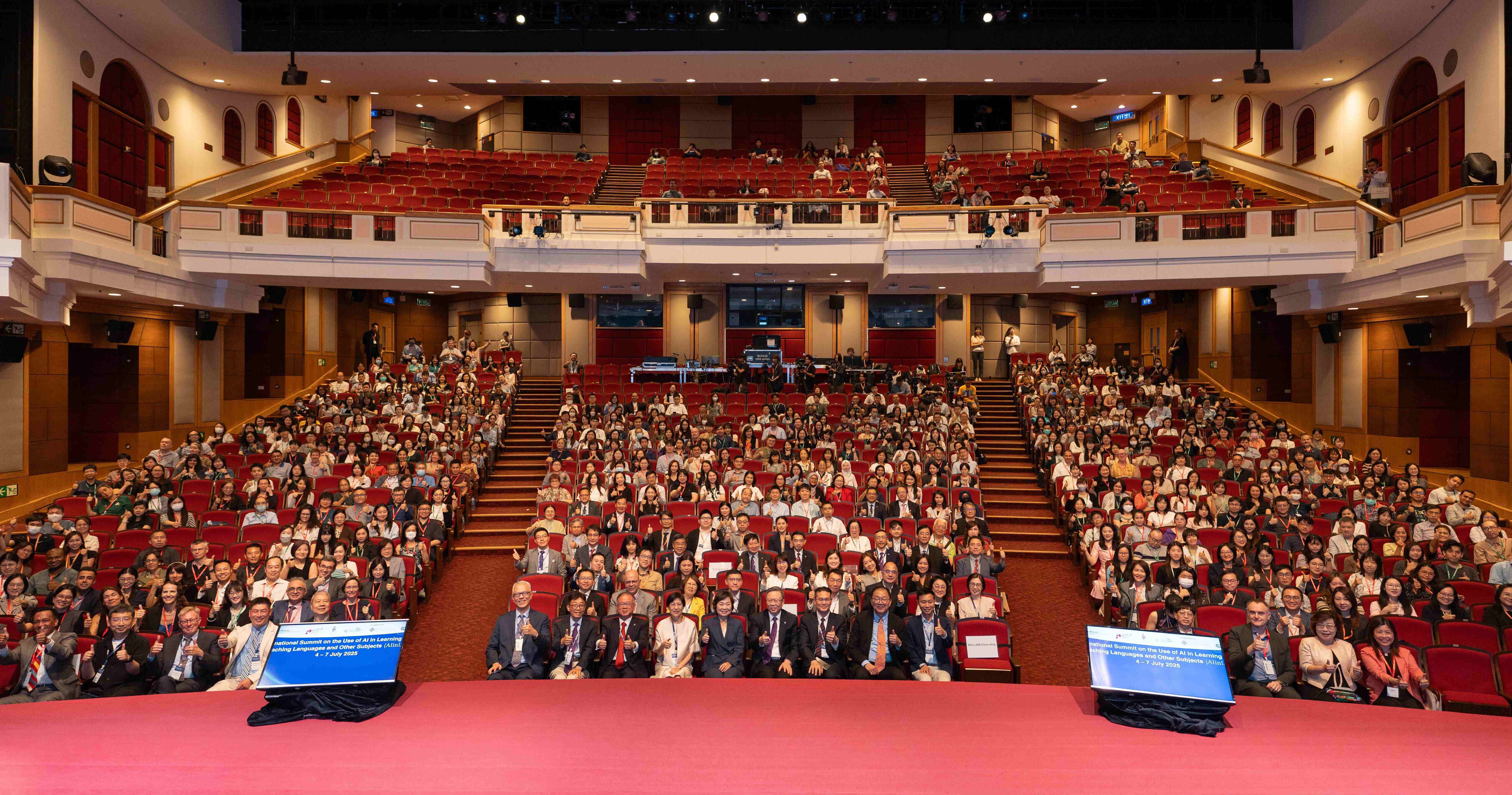 The Hong Kong Polytechnic University (PolyU) hosts the International Summit on the Use of AI in Learning and Teaching Languages and Other Subjects (AIinLT Summit) from 4 to 7 July. Organised by the PolyU Department of English and Communication, in collaboration with the Education Bureau of the Hong Kong Special Administrative Region (HKSAR), the Standing Committee on Language Education and Research (SCOLAR), and Hong Kong Education City (EdCity), the AIinLT Summit brings together leading scholars, educators and researchers from around the world to explore how artificial intelligence (AI) is revolutionising education. It will also provide educators with practical skills training, aiming to advance teaching and learning across Hong Kong and the region. The opening ceremony of the AIinLT Summit, the first keynote speech and a panel discussion were held in the Jockey Club Auditorium at PolyU today, attracting nearly 1,000 attendees.