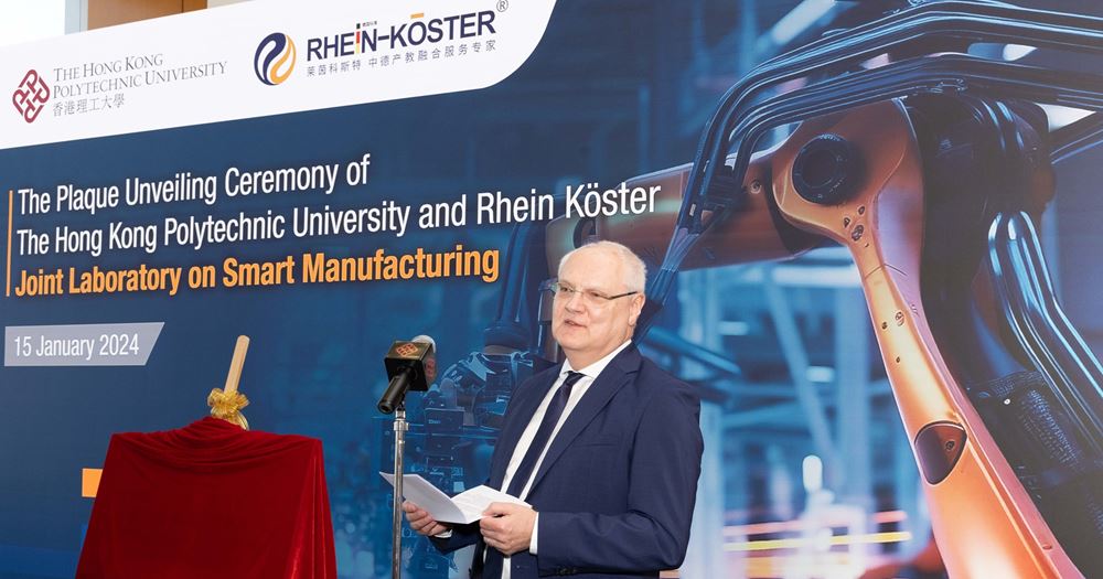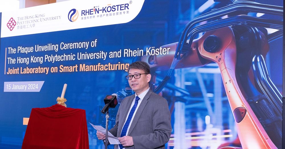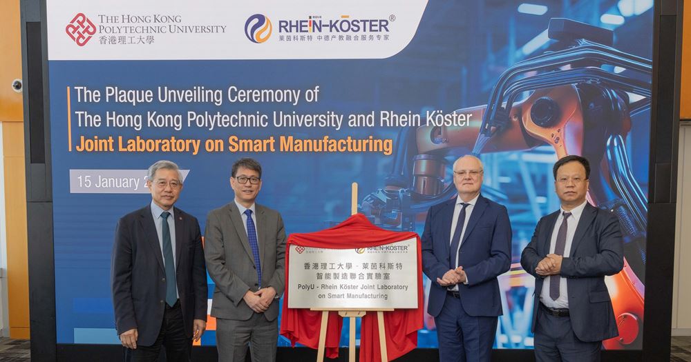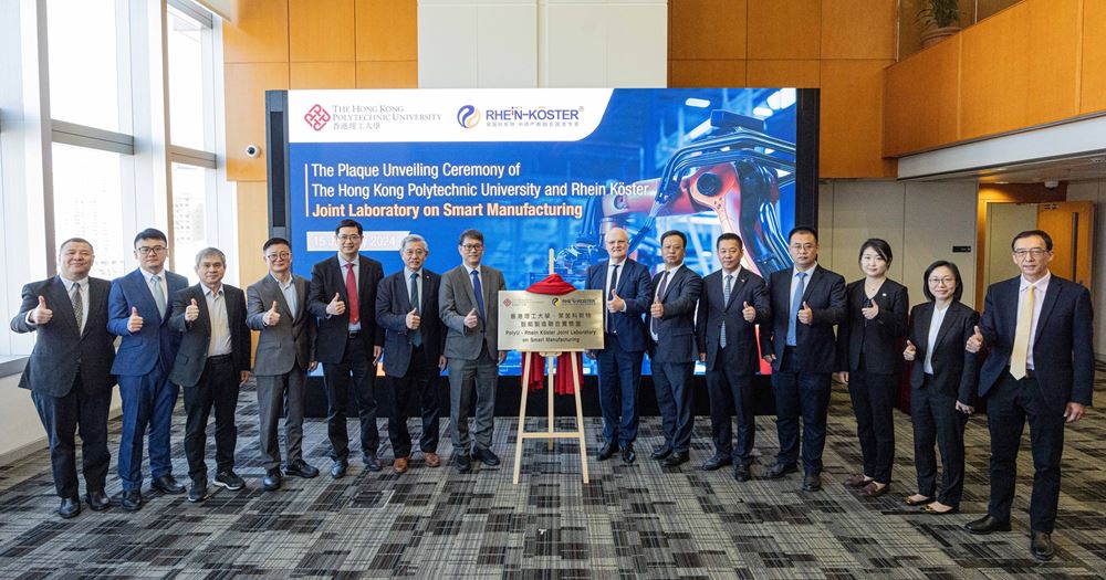The Hong Kong Polytechnic University (PolyU) and the Rhein Köster signed a MoU to establish the "PolyU-Rhein Köster Joint Laboratory on Smart Manufacturing" (Joint Lab) in October 2023. The Plaque Unveiling Ceremony of the Joint Lab took place at PolyU on 15th January. PolyU is the only university in Hong Kong to set up a joint lab with Rhein Köster, showcasing the outstanding research capabilities of our researchers in the respective field.