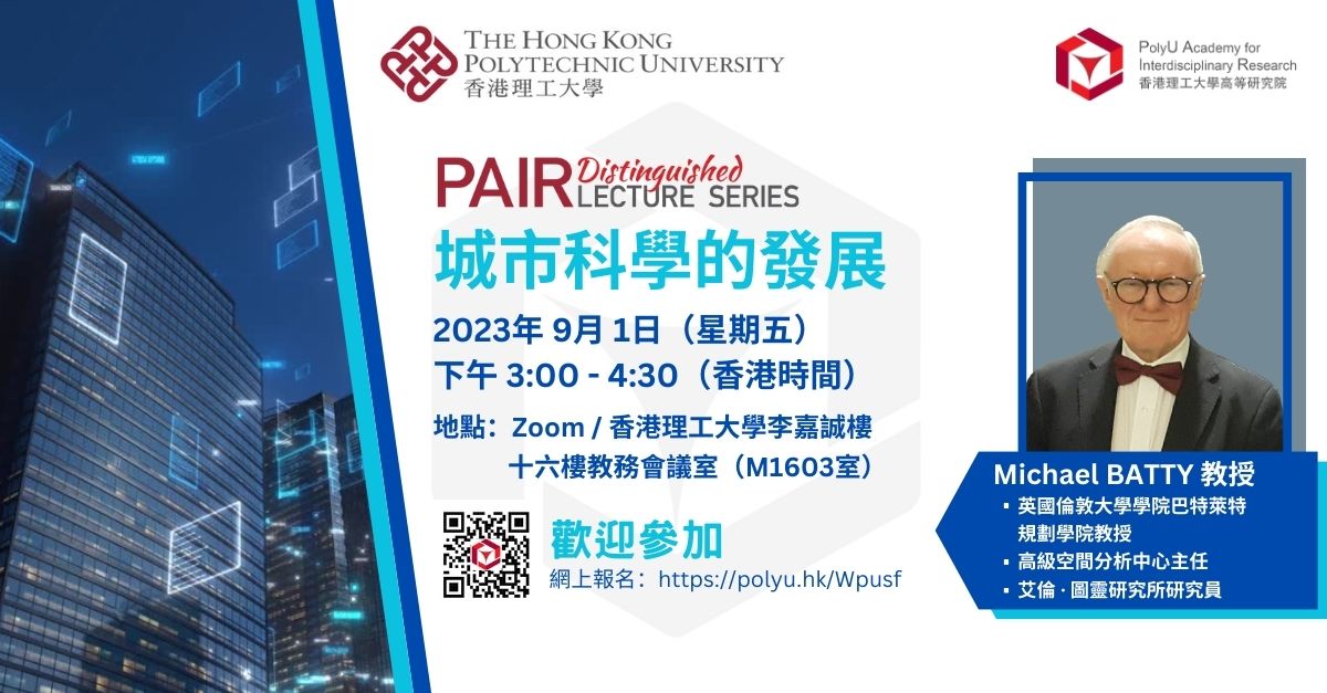 Michael Batty教授作為全球最廣獲徵引城市規劃學者之一,其著作、廣泛研究和全球網路參與為城市設計和規劃以及相關技術開發作出了莫大貢獻。也於其領域的卓越成就備受國家及國際肯定,他曾獲多項獎項及院士殊榮,其中包括2013年瓦特林.路德國際地理學獎(又稱「地理學諾貝爾獎」)。