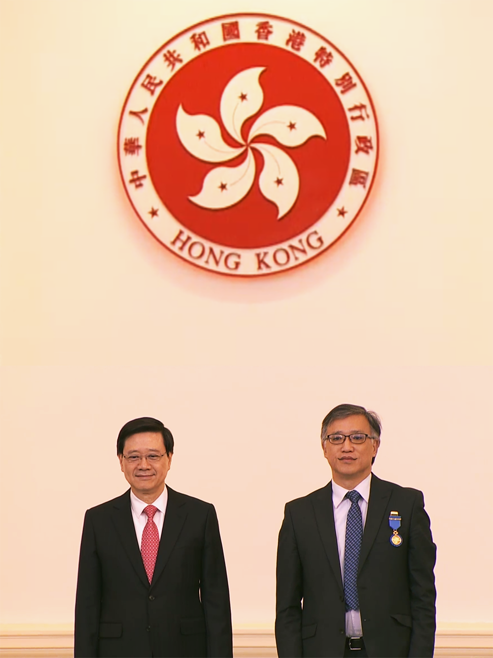 Prof. K.F. CHUNG of the Department of Civil and Environmental Engineering (CEE), also Director of the Chinese National Engineering Research Centre for Steel Construction (Hong Kong Branch), received a Medal of Honour from the Government of Hong Kong SAR for his exemplary contribution to engineering in Hong Kong, specifically through his impactful research and technology transfer of high strength S690 steel. The Medal was presented to Prof. Chung by Mr John LEE, Chief Executive of HKSAR, on 25 November 2023 at the Government House. The research and innovations of high strength S690 steel enable significant savings in construction materials and time, manpower demand, and carbon footprints. Typical applications include long span foot bridges and roof structures, highway noise closure, steel piles supporting heavily loaded structures, and supporting members in road bridges. | ||||