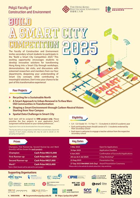 This project invites students to contribute to the sustainable development and carbon neutrality goals at PolyU or their own secondary schools. Participants will work in teams to develop innovative solutions to tackle climate change problems, such as reducing campus waste, conserving resources and incorporating green technologies to achieve environmental sustainability. This competition is a fast-paced simulation of a real-world project, it emphasises teamwork and collaboration, with guidance from PolyU professors and industry mentors.